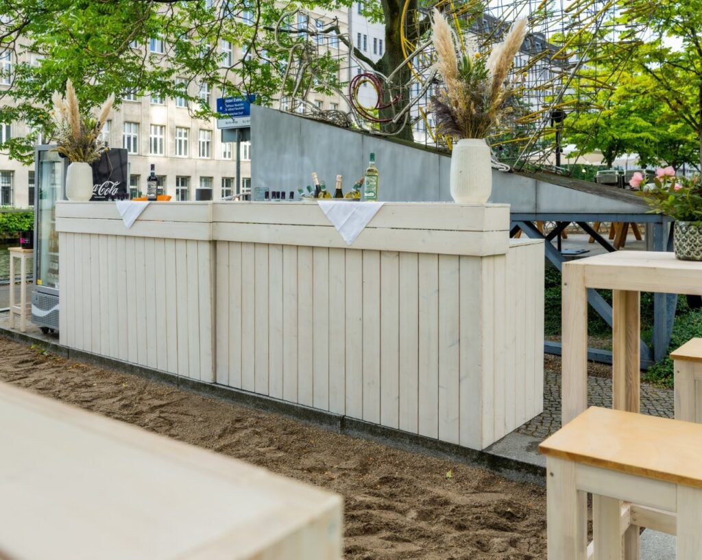 Besonders: Die gesamte Holzserie wird bei uns inhouse entworfen und produziert – echtes #handmade für höchste Qualität und individuelles Design. Sämtliches Mietmobiliar ist sowohl für den Indoor- als auch Outdoor-Einsatz geeignet und bietet maximale Flexibilität.