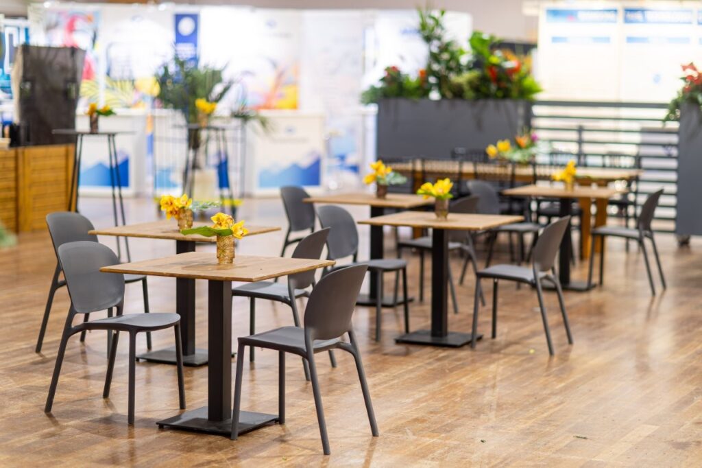 Unsere Bistrotische sind die ideale Wahl für Empfänge, Events und lockere Veranstaltungsformate. Sie bieten eine flexible Lösung für Stehbereiche und lassen sich vielseitig in unterschiedliche Raumkonzepte integrieren.