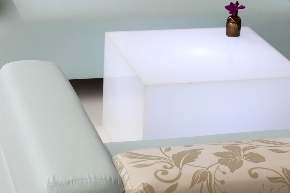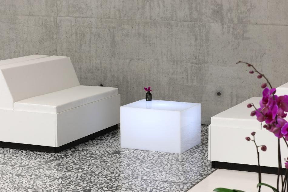Loungetisch komplett aus Acryl gefertigt und auf Wunsch inklusive kabelloser Beleuchtung. Gefertigt aus Acryl ist er ein echter Allrounder und sowohl für den Innen- als auch für den Außenbereich bestens geeignet.
