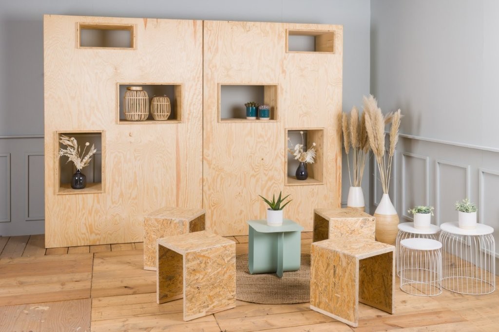 Ob als Sitzgelegenheit oder stilvolles Gestaltungselement – die OSB Hocker fügen sich flexibel in jedes Event- und Raumkonzept ein.