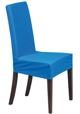 Stuhlhusse aus blauem Fahnenstoff in B1 Qualität.