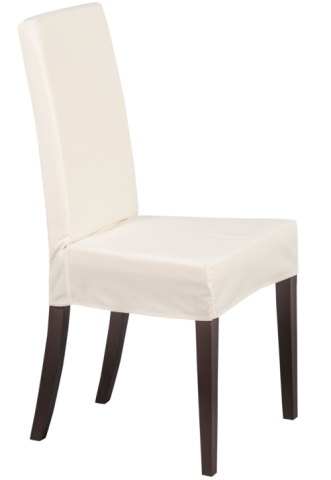 Stuhlhusse aus cremefarbenem Fahnenstoff in B1 Qualität.