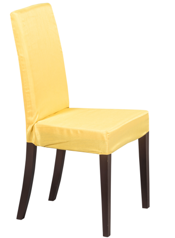 Stuhlhusse aus exklusivem, gelbem JAB Stoff in Rohseideoptik.