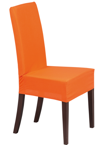 Stuhlhusse aus orangefarbenem Fahnenstoff in B1 Qualität.