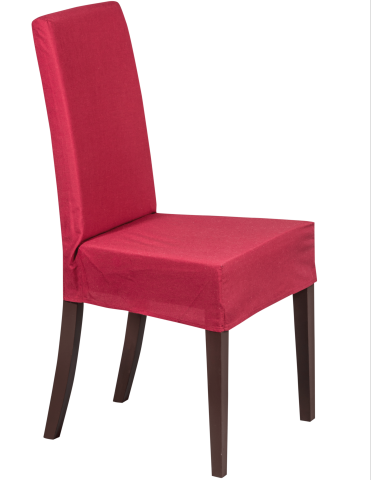 Stuhlhusse aus bordeauxfarbenem Fahnenstoff in B1 Qualität.