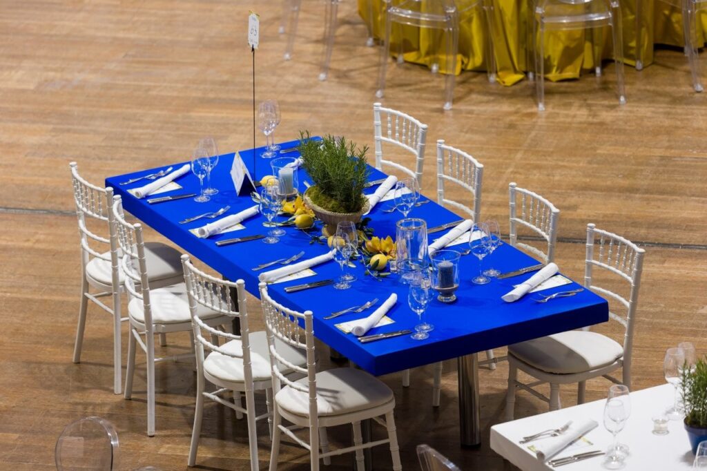 Für den modernen Touch und extra Beinfreiheit sorgen unsere Tische mit Stretchüberzug. Ob nur Obertisch- oder auch Untertischstretch, weiß, grau oder schwarz, wir haben sie alle. Und das Beste daran ist, dass alle Stoffe flammenhemmend (B1) ausgerüstet sind.