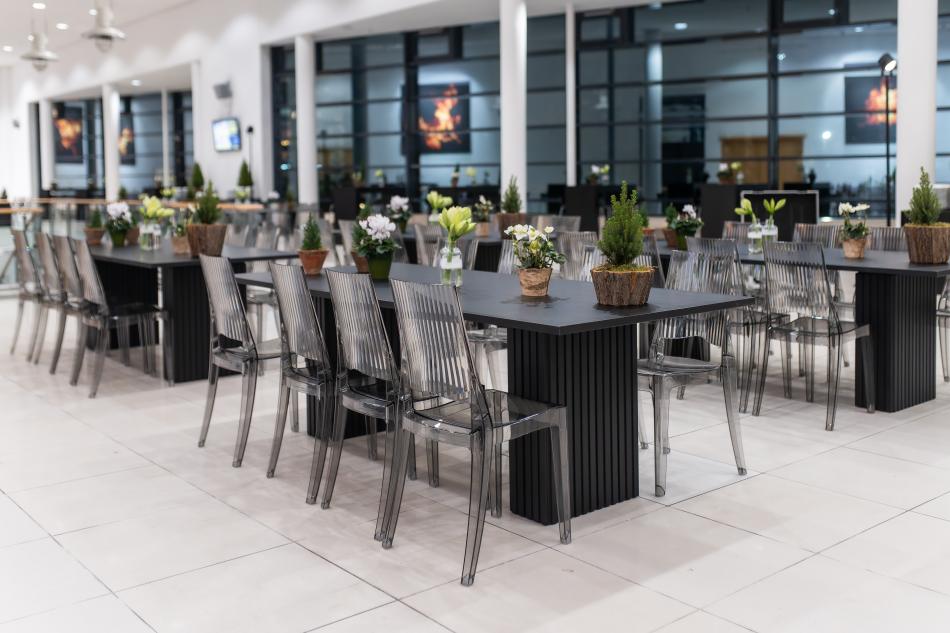 Wir haben lange darauf gewartet und jetzt sind sie endlich Teil unseres Mietsortiments: Die Tischbeine in strukturierter Panel-Optik setzen elegante Akzente, während die Tischplatte mit edler Holzmaserung für eine hochwertige Ausstrahlung sorgt.