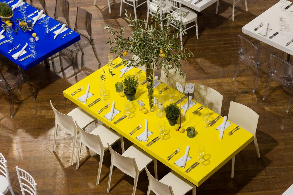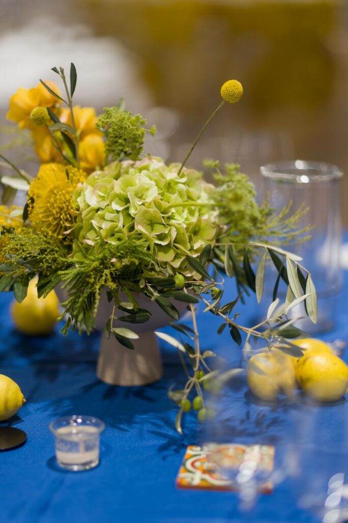 Mit mediterraner Floristik, Olivenzweigen, Zitronen und den Farben blau, weiß & gelb haben wir eine unvergessliche Veranstaltung im Stil Südspaniens gestaltet. Neben der Dekoration haben wir auch das Eventmobiliar getreu dem Motto in blau, gelb und weiß gehalten.