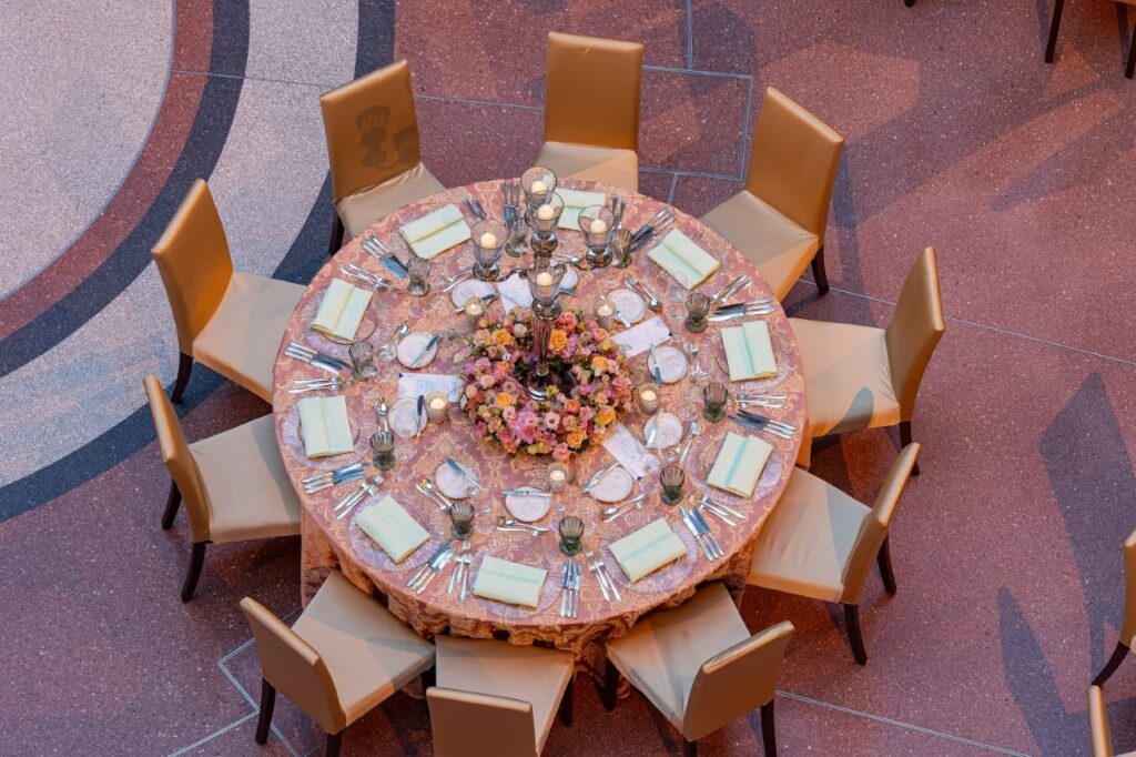 Hier stand alles im Zeichen von Eleganz und Detail: Mit exklusiver Tischwäsche fernab vom Standard, hochwertiger Tischdekoration sowie abgestimmten Table Tops wie Platztellern und Wassergläsern konnten wir unsere Stärke im Bereich stilvoller Ausstattung eindrucksvoll unter Beweis stellen.