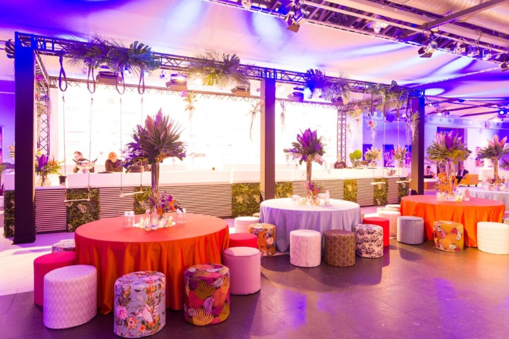 Für das Kick-off eines Finanzdienstleisters mit rund 3.500 Mitarbeitenden durften wir das Estrel Berlin in eine tropische Eventwelt verwandeln. Unter dem Motto „Tropical Island“ lieferten wir die passende Ausstattung und Dekoration für ein stimmiges Gesamterlebnis.